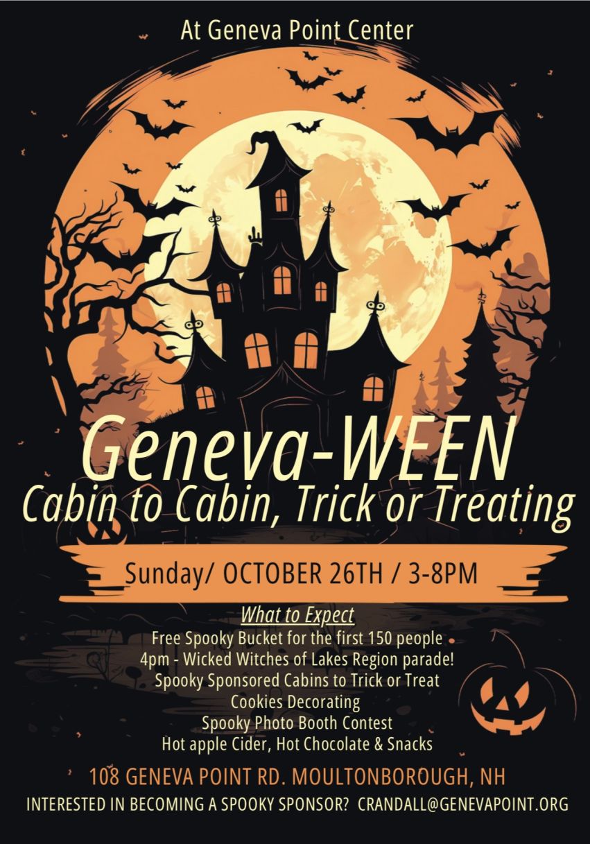 Get ready for a spooktacular Halloween celebration at Geneva-WEEN! Families are invited to enjoy an evening of safe, festive fun as cabins transform into themed trick-or-treat stops.